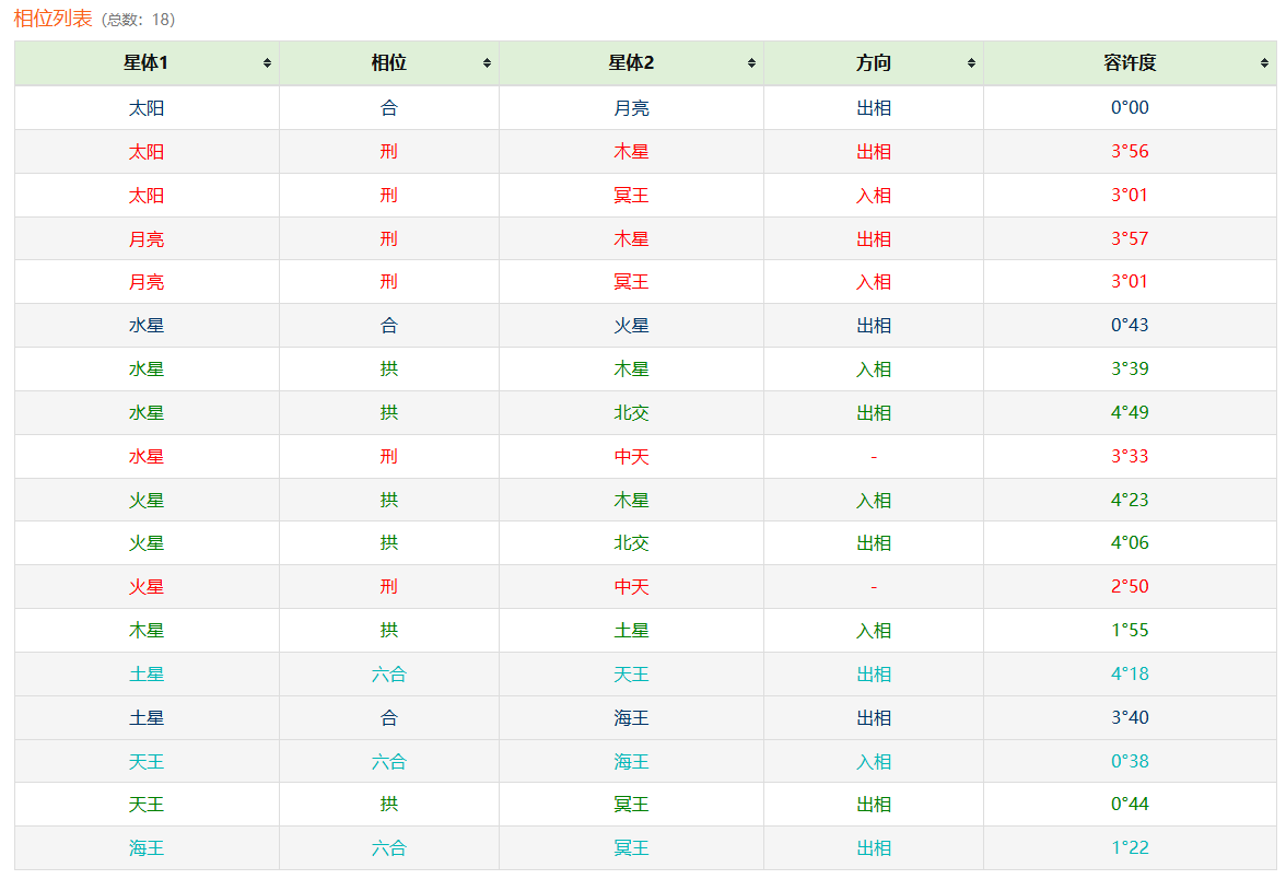 太阳落入,落陷,几乎无影响力,并与木星和冥王星相刑,司法相关机构会出现麻烦,相关官员受到抨击批评等。